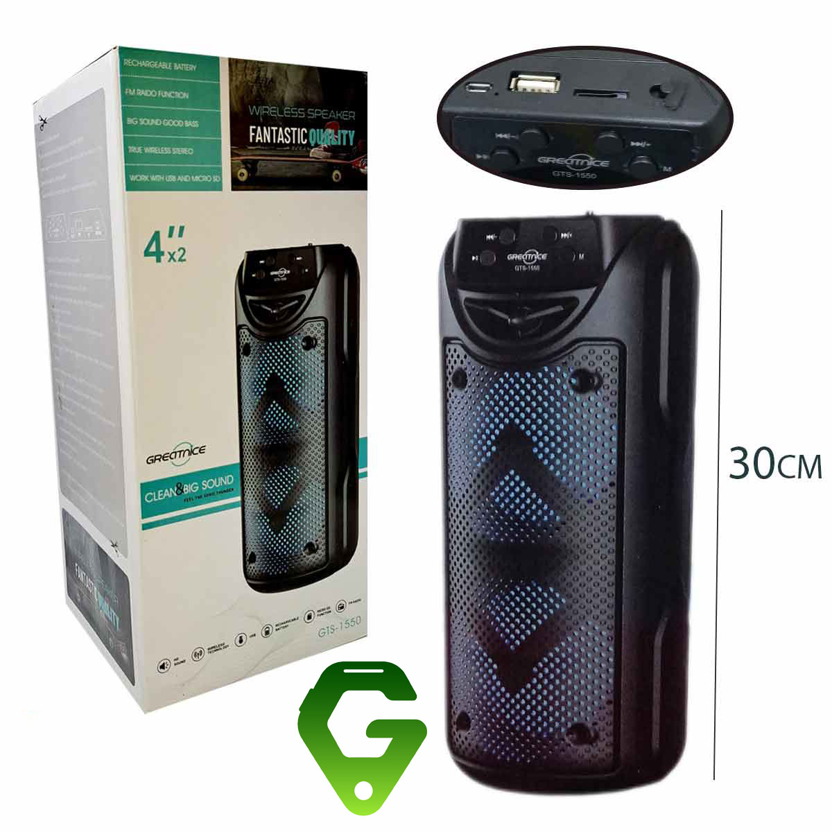 اسپیکر بلوتوثی GTS-1550 با قابلیت پشتیبانی از بلوتوث فلش و مموری میتواند لحظات خوشی برای شما در دورهمی ها و پیک نیک های آخر هفته داشته باشد اینکار با استفاده از آدابتور شارژ و پاور بانک و فندکی ماشین قابل شارژ میباشد.