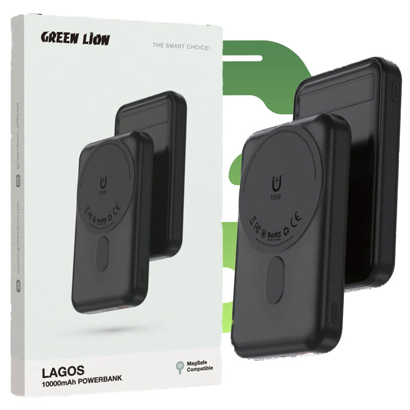 پاوربانک گرین لاین مدل Lagos ظرفیت ۱۰۰۰۰ میلی آمپر مگنتی